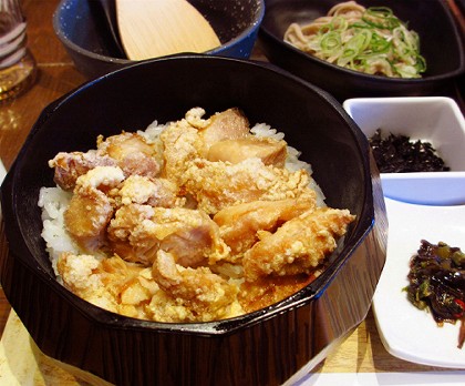 山賊焼きは、タレに漬け込んだ鶏肉を揚げ焼きにしたもんだそうで。 一気にガガガーッと食べたかったんですが、一応ひつまぶしってことで、1杯目はそのまま、2杯目は薬味で、3杯目はお茶漬けで食べました。