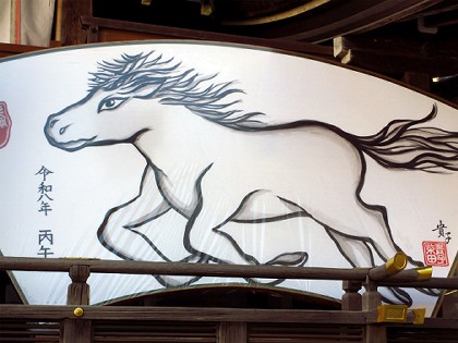 ![]() 大神神社の絵馬です。 なんだか、パカランパカランと走っていきそうな、勢いのある絵ですよね。 アクロスも午年だから、パカランと走らせねばと、この日はバイクで神社へ行きました。初走りです。