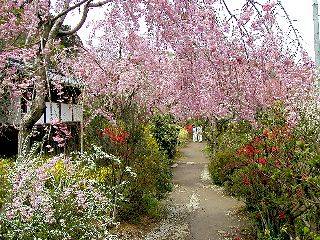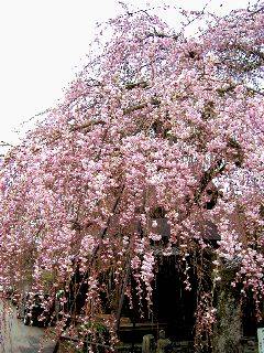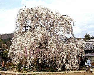 ![]() 大野寺の枝垂れ桜 下から見上げれば見事な滝桜だ |