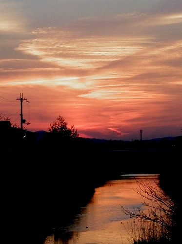 川に映る夕陽の色に心が動かされました。