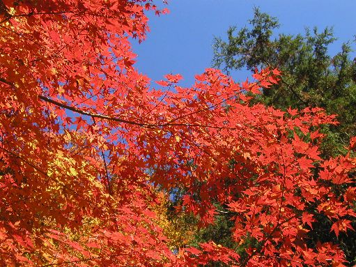 目に鮮やかな色合いを、秋風の中で眺めていた