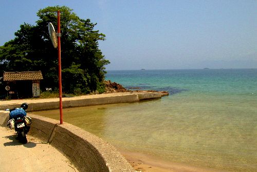 そば屋を目指していたら、コーナーの向こうに美しい浜が現れた。