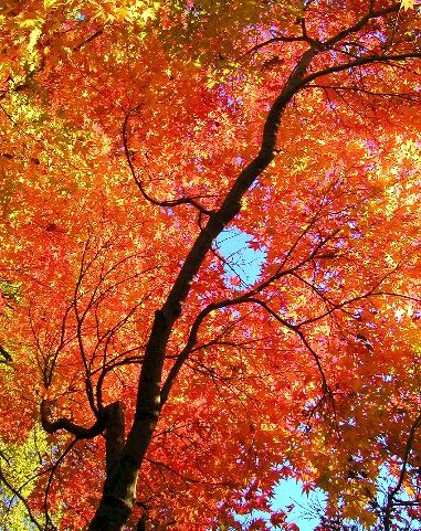 まるで万華鏡の世界。光を通して見上げた輝く紅葉