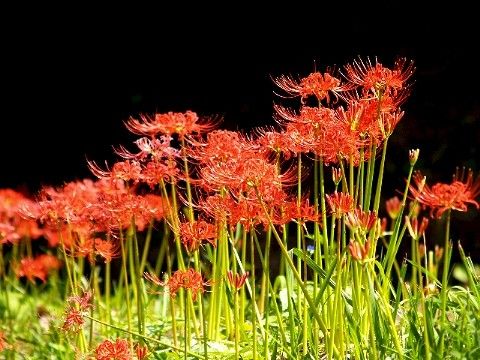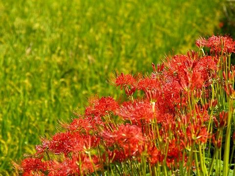 <葛城市大字寺口> 田んぼの畔を飾る彼岸花。収穫の時を知らせてるようだ。 |