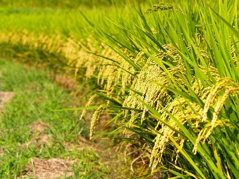 <高取町> 稲穂が頭を垂れて、おいしそう。あ〜、ハラヘッタ。おにぎり食べたいなあ。 |