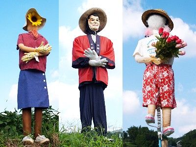 <明日香村稲渕> 棚田広がる明日香では、変わった案山子がお出迎え。 毎年、案山子コンクールが催される。 |