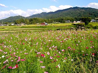 稲刈りの音、真っ赤なコスモス、青く高い空。やさしい風が吹く歴史の里