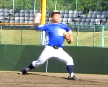 2試合目はリリーフで、カーブで2者連続三振。自分でもビックリ。よく曲がりました。 ![]() ピッチャーらしいフォームやん。