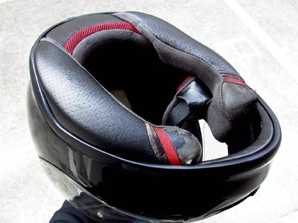 早速交換すると、頬の所がギュッギュで狭くて。 そのうち、緩くなって、気になんなくなるんですよね。 ![]() 手前の先端部分が、剥がれてます。 破れて中身が出てくる前に交換できて、良かった良かった(笑)。