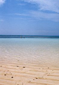<海> 波照間の海へ。青い青い遠浅の海がどこまでも続く。 バシャバシャとポイントを探しながら、シュノーケルで遊んでいると、気が付いたら背中がヒリヒリしていた。しまったー、日焼けじゃあ。今日の風呂は染みるぞぉ。 一旦砂浜にもどる。時間が止まった島で、ヤドカリと戯れながら過ごすと、自分のいる場所がどこだかわからなくなってくる。 空は果てしなく青く、海はどこまでも広く続いていた。 |
