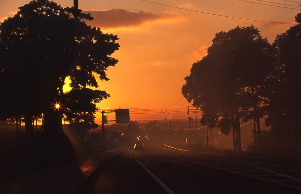 札幌へ向かっている時、オレンジ色の光りが世界を包み込んだ。何もかも忘れて立ち尽くす、夕暮れの時間。