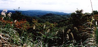 <やんばるの森> 沖縄本島の北側にある「やんばるの森」を行く。山の中では、マイペースで走れるからいい。のんびり進むクネクネ道。すれ違う車もいない。山の上まで来ると、青い海と海岸線が見えてきた。ここまでやって来た者だけの風景。 |