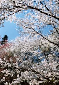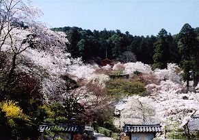桜を見上げながら佇んでいると、通りがかったおじさんが「まるで極楽浄土じゃなあ」と呟いたのです。思わず「それやあ!」と言いかけたくらいに、ピッタリくる言葉でした。真っ青な空の下、満開の桜が初瀬の山を埋め尽くす風景は、まさに極楽浄土の世界でした。