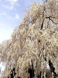 ![]() 大野寺の枝垂れ桜 下から見上げれば見事な滝桜だ |