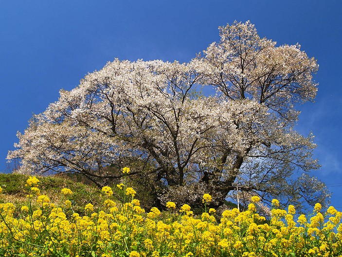 仏隆寺の望月桜。高台の上に立つ姿が美しい。