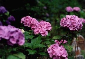 しょうぶ園に向かってバイクを走らせていると、突然あじさいに歓迎された。 紫、薄紫、淡い色の花が咲き乱れている。 こういう出会いがあるからこそ、また旅に出たくなる。 (奈良・滝谷しょうぶ園の入り口付近) |