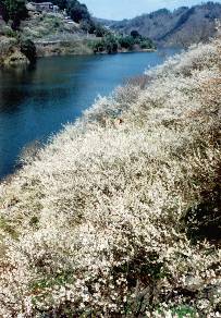 ![]() 渓谷を埋め尽くす白梅 |