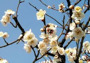 陽射しに輝く、眩しい白梅 風は冷たくとも、日光を浴びながら、夢中になって梅を追い掛け歩いていると、いつしか体が温まってきました。 春まであと少し。 |