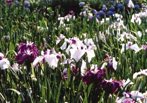 「花しょうぶが咲く柳生の里へ」 柳生石舟斎や十兵衛といえば、時代劇でその名を聞いたことがあるでしょう。彼らが実際に生活していたのが、この柳生の里なのです。今でも古い建物が残っており、剣に生きた時代の雰囲気を醸し出しています。 そんな山里の谷間にある花しょうぶ園は、美しい白や紫の花しょうぶでびっしりと埋め尽くされています。まるで花のじゅうたんのようです。 畦道を歩くと、カエルがチャポンと水の中へ飛び込みました。一体何匹いるんだ、と思うくらい、たくさんのカエルが飛び跳ねています。つい童心に戻ってしまう瞬間です。