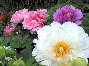 境内の奥にボタン園があり、いろんな色のボタンや花が今まさに満開。 見て歩くだけで、楽しくうれしい気分にさせてくれました。 |